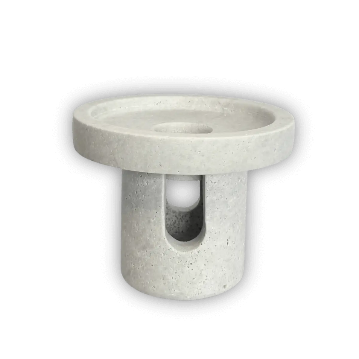 מבער שמנים מעוצב עשוי אבן טרוורטין טבעית בצבע אפור בהיר בעל טקסטורה ייחודית. אבן הטרוורטין היא חומר טבעי, ולכן הצבע והטקסטורה עשויים להשתנות מפריט לפריט.